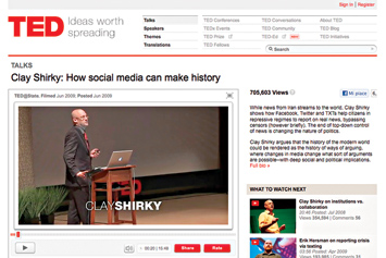 Rai Scuola propone un filmato che, con il supporto di immagini dell'epoca, offre una panoramica sull'impiego dei mezzi di comunicazione di massa all'inizio degli anni Venti. Clay Shirky spiega alla platea di Ted come Facebook, Twitter e i cellulari stiano aiutando i cittadini di regimi non democratici a pubblicare notizie, scavalcando la censura, e come la fine del controllo dall'alto delle notizie stia trasformando la natura della politica.